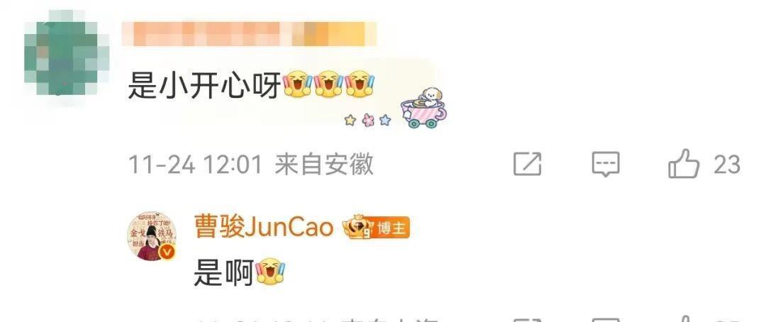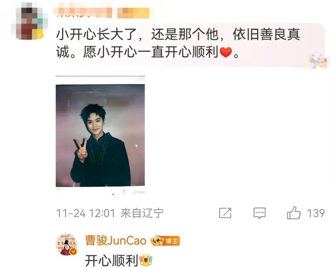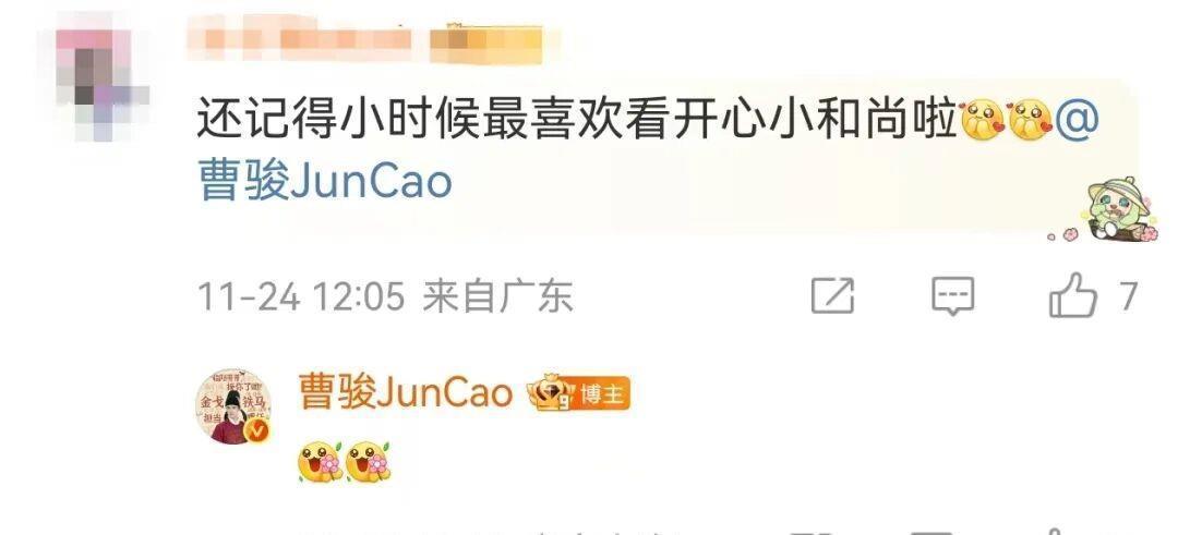 网友评论当天,曹骏还在评论区与网友互动。有网友直呼“回忆杀”。有网友表示“小时候很喜欢开心小和尚”“他是我童年的白月光”。还有网友感叹“小开心长大了,还是那个他”。